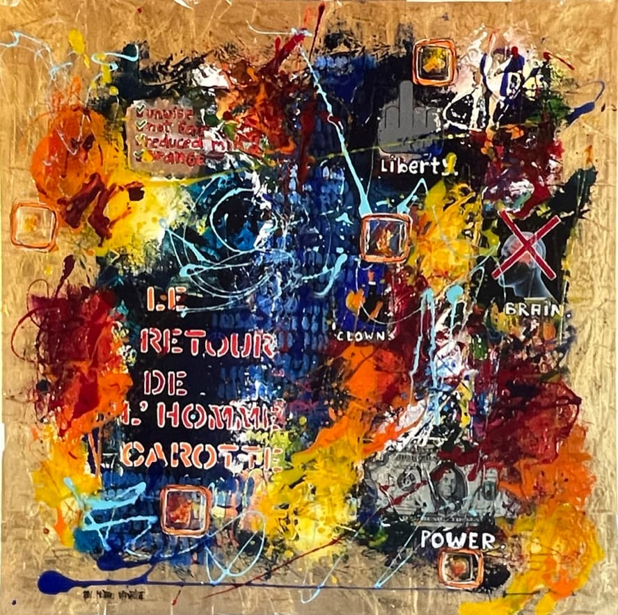 feuille d’or , huile , acrylique , encre , pigments , résine sur toile enchassée